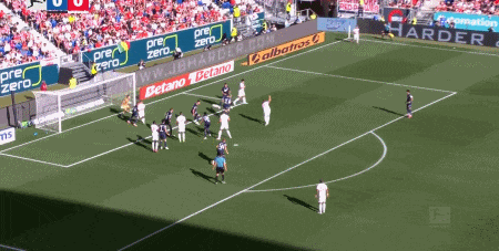精彩进球:第44分钟,卡尔开出角球,凯恩扫射破门,拜仁1比0霍芬海姆